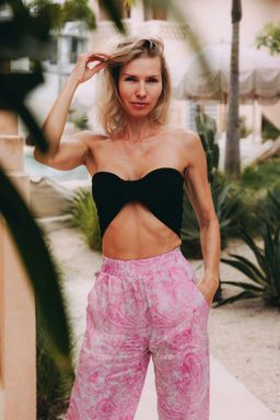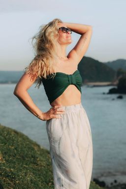 Top Juhi vás odprevadí na pláž aj na párty. Je pružný, ale zároveň perfektne drží presne tam, kde má. Efektný uzol na prednej časti krásne podčiarkuje ženskosť.