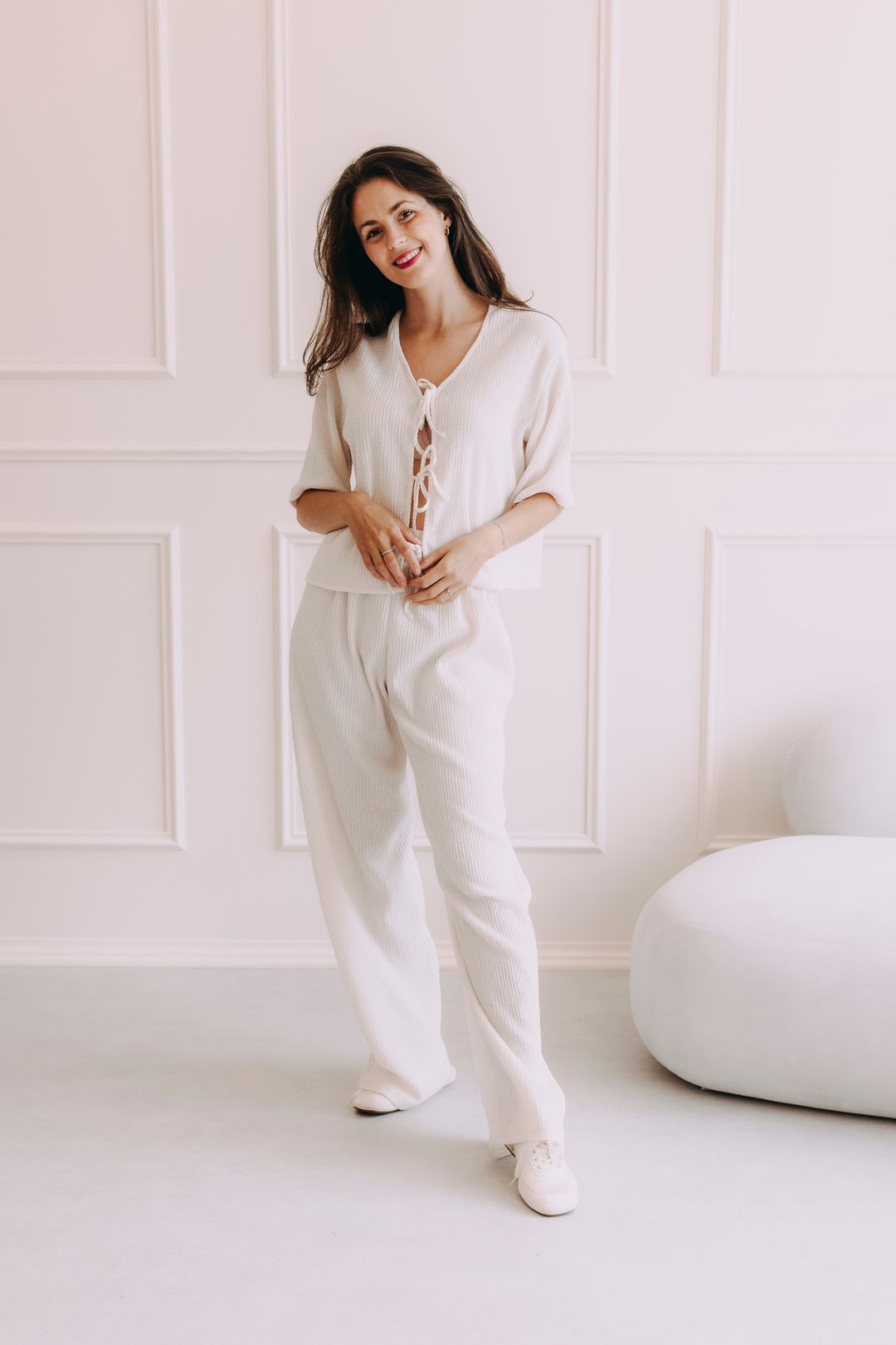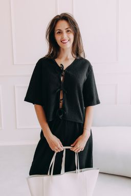 Top je ušitý z rovnakej vrúbkovanej látky ako nohavice Kamau – a práve s nimi tvorí letnú dvojku, ktorú oceníte nielen na dovolenke.