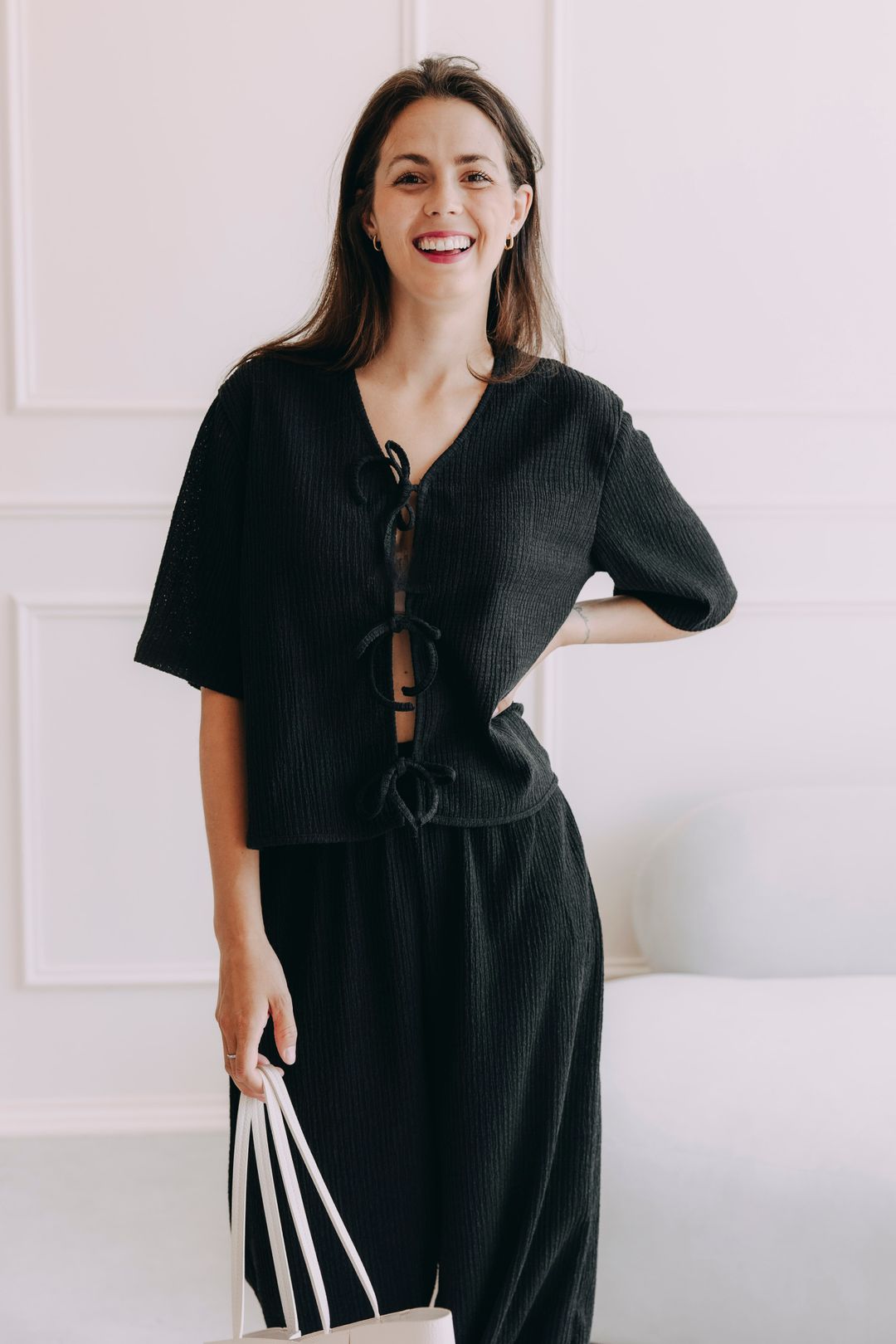 Top je ušitý z rovnakej vrúbkovanej látky ako nohavice Kamau – a práve s nimi tvorí letnú dvojku, ktorú oceníte nielen na dovolenke.