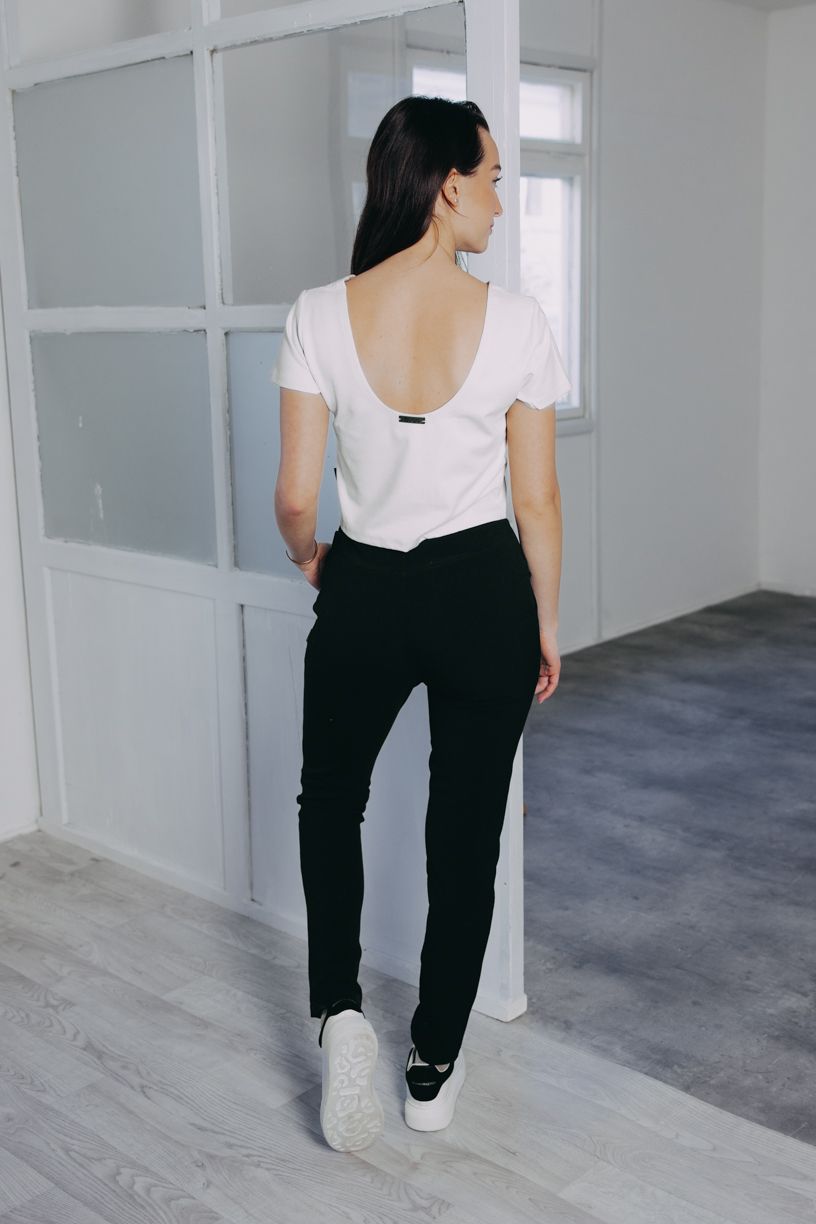 Nový smotanový top Aina s lodičkovým výstrihom sme ušili z príjemnej bavlny s maličkou prímesou elastanu, takže si pekne drží svoj tvar, aj keď v ten deň nebudete vedieť, kam skôr skočiť.