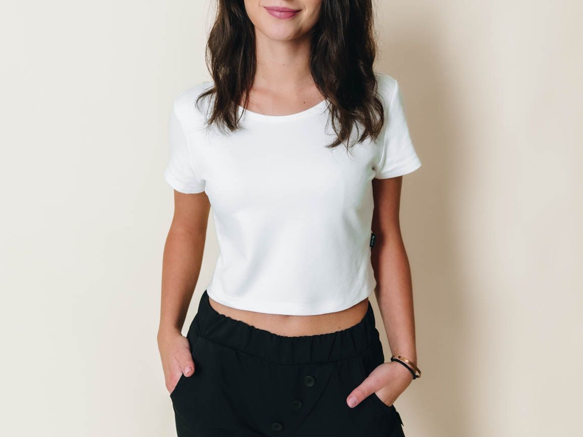 O čo je crop top Aina kratší, o to je širší. Aj v lete vám v ňom bude príjemne, pretože pekne vetrá. Že sa na odhaľovanie bruška a chrbta dvakrát necítite? Tento šmiknutý top si určite obľúbite, aj keď inak siahnete skôr po dlhších tričkách. So sukňou alebo nohavicami s vysokým pásom mu to totiž pristane úplne rovnako ako odvážnejším kombináciám s nižšími kúskami.