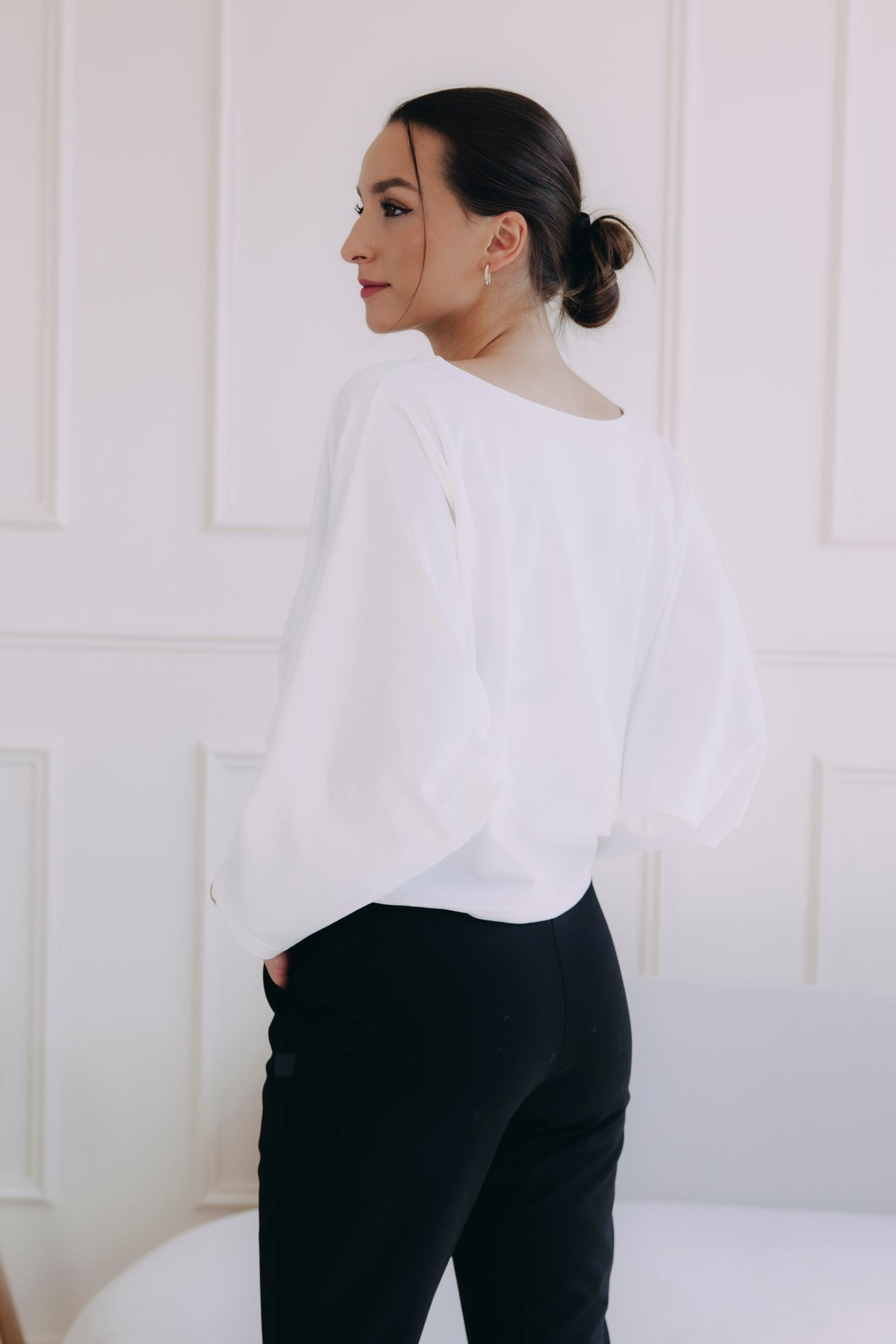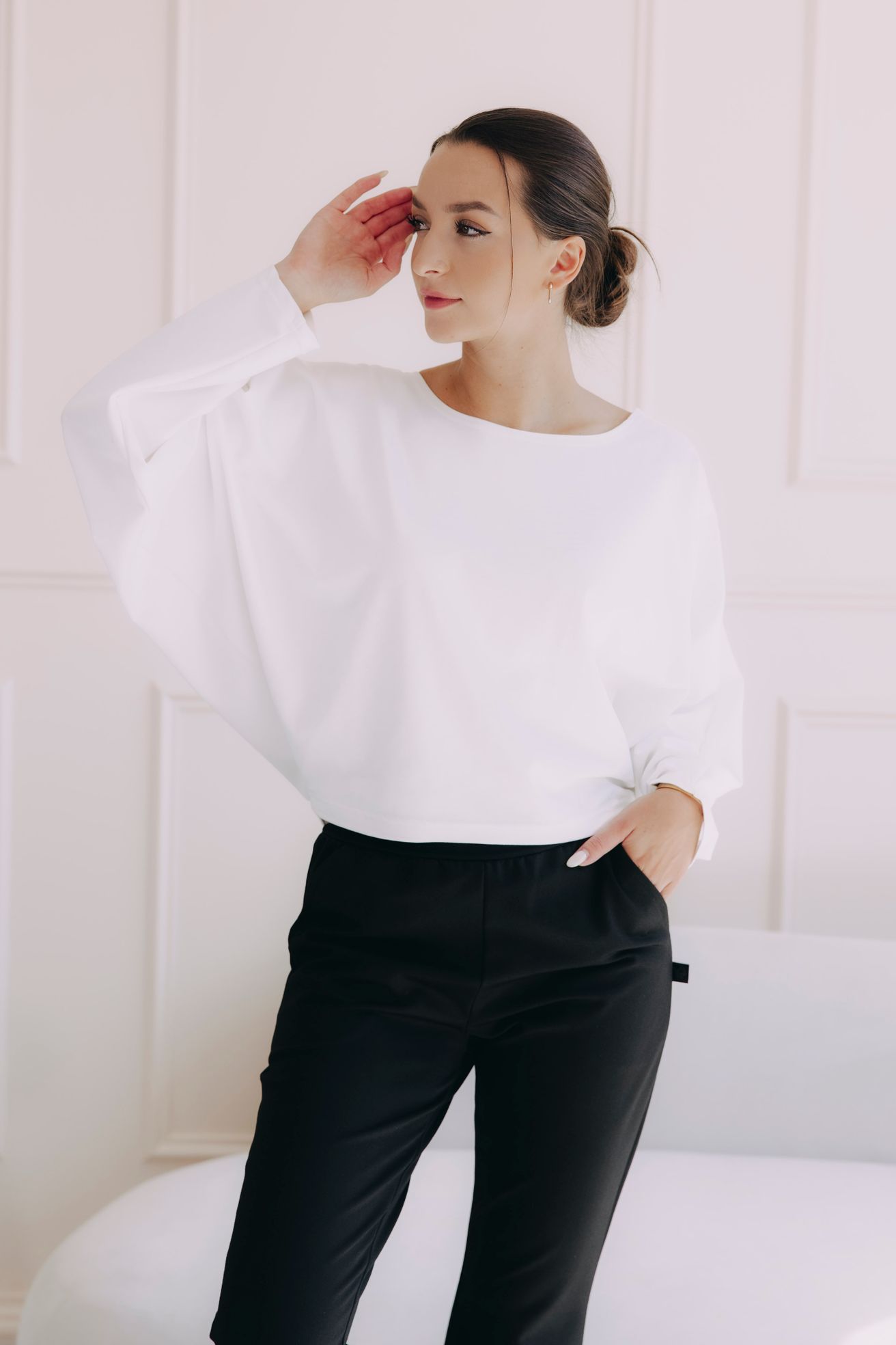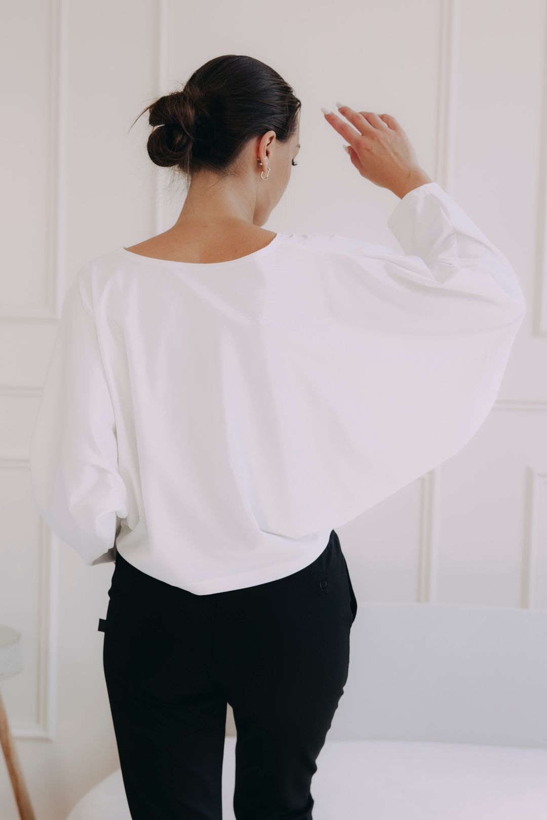 Tričko Elira má voľný strih inšpirovaný netopierími krídlami, ktorý sa smerom dole elegantne zužuje. Tento dizajn lichotí každému typu postavy, pretože prirodzene skrýva drobné nedostatky v oblasti brucha a bokov.