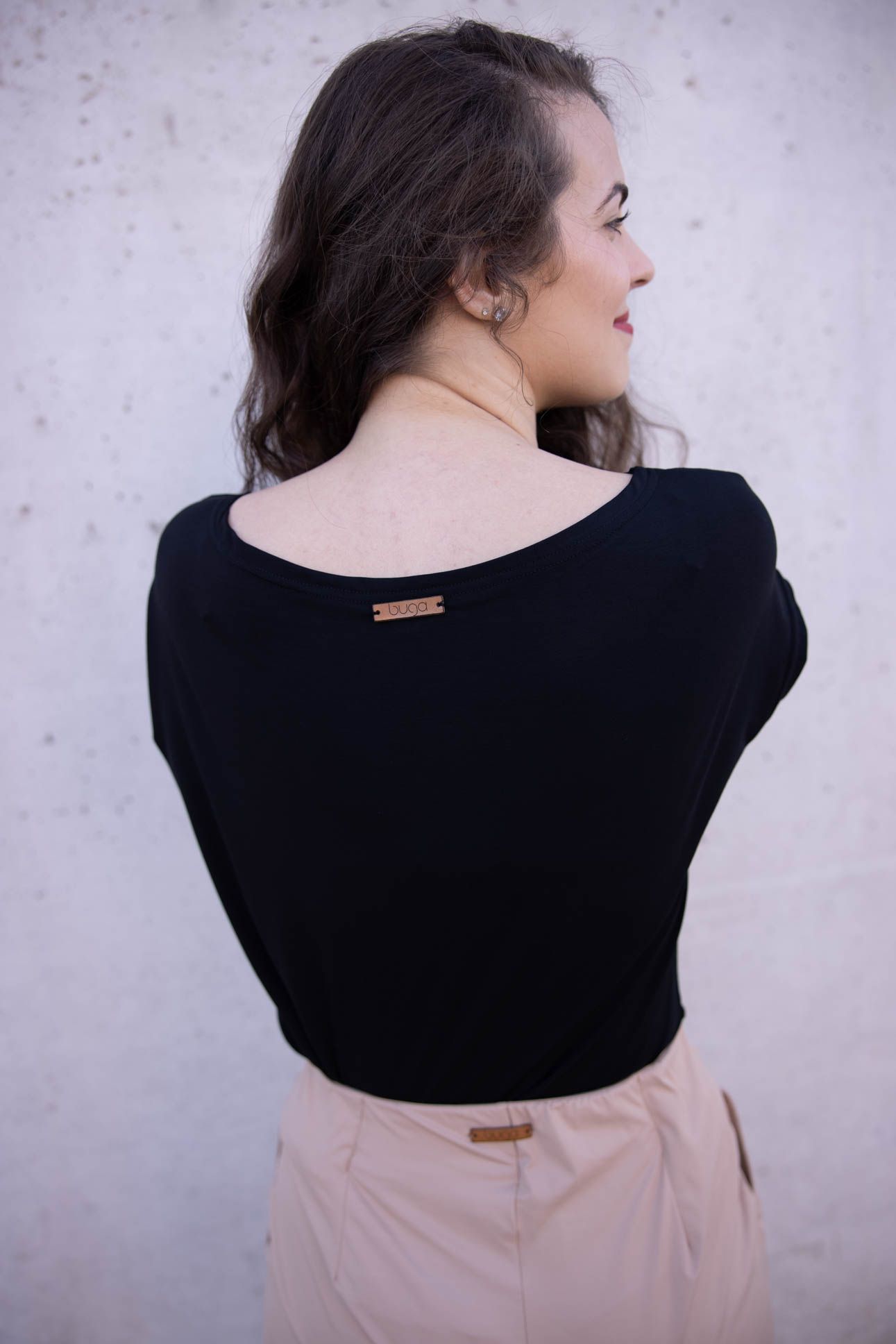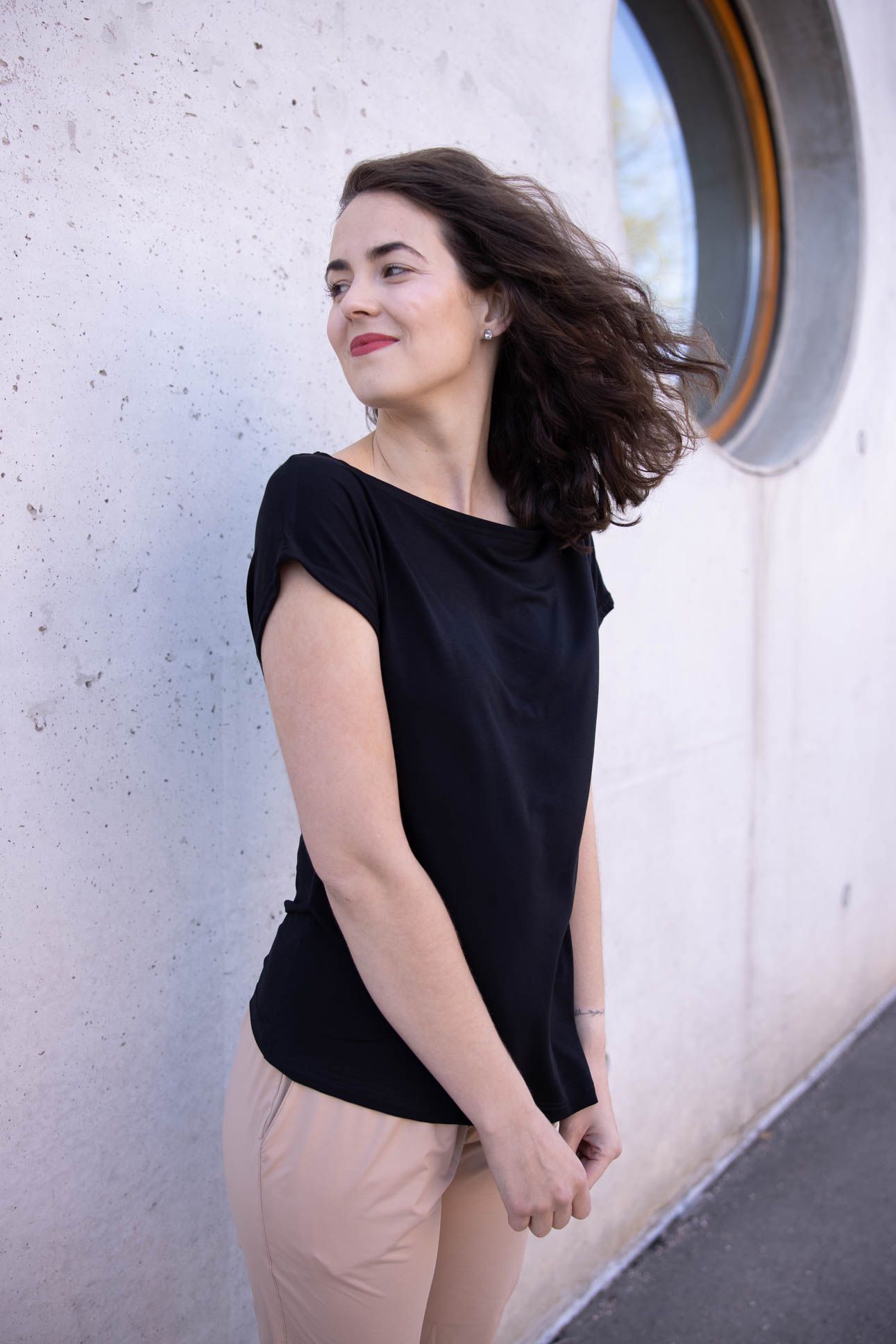 Šatník bez jednofarebných tričiek je ako leto bez zmrzliny: neprichádza do úvahy. Tie naše sú z jemného elegantného bambusu - ľahučký a vzdušný materiál ako stvorený na horúce letné dni. Siahli sme po farebnej klasike, čierne tričko má širší lodičkový výstrih a rafinovane strihaný spadnutý rukáv.