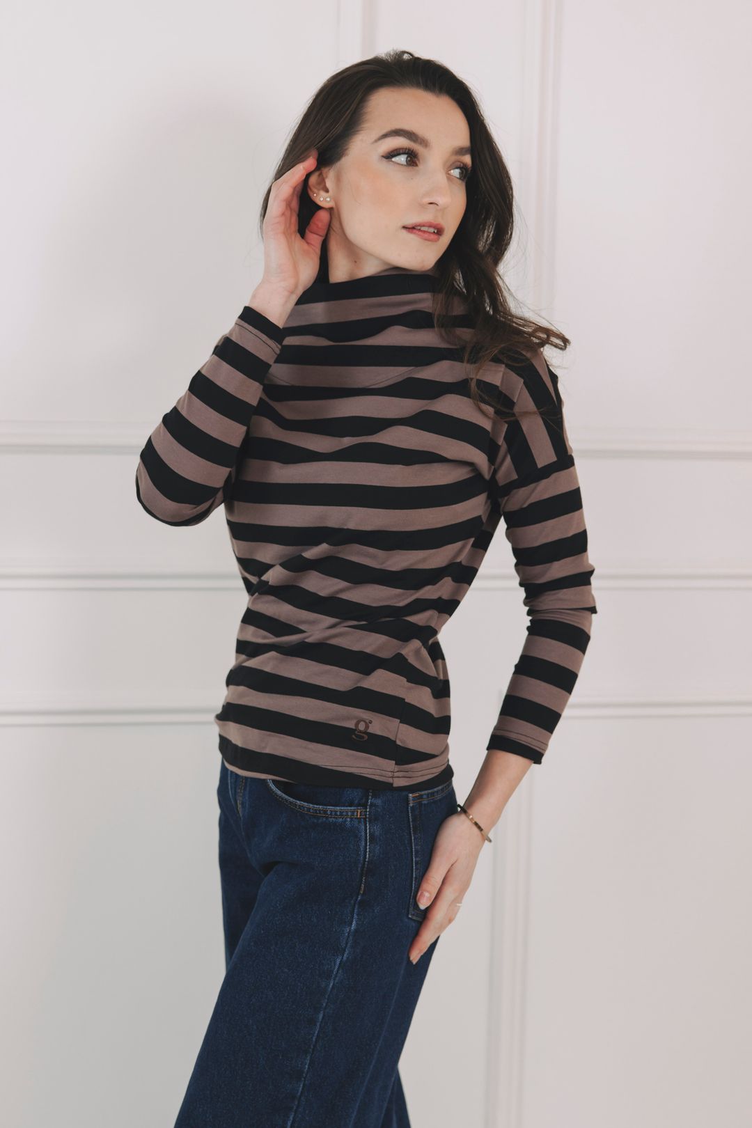 Tričko Izi má obľúbený hravý stojáčik a je obopnuté cez pás a boky, takže krásne kopíruje postavu. Jasný kandidát na základný kúsok vášho šatníka.