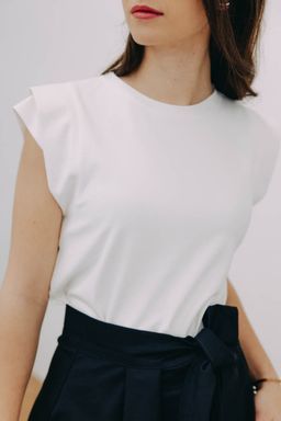 Basic tričko Kimani očarí efektným detailom. Guľatý výstrih vytvára symetrickú líniu okolo krku. Rukávy sme poriešili netradične, a to tak, že vyzerajú ako navrstvené. Tento dvojitý efekt sa postará o zaujímavý efekt, nech už si tričko oblečiete k sukni, nohaviciam alebo kraťasom. Príjemný materiál, ktorý kombinuje viskózu s polyesterom a spandexom je príjemný bonus.