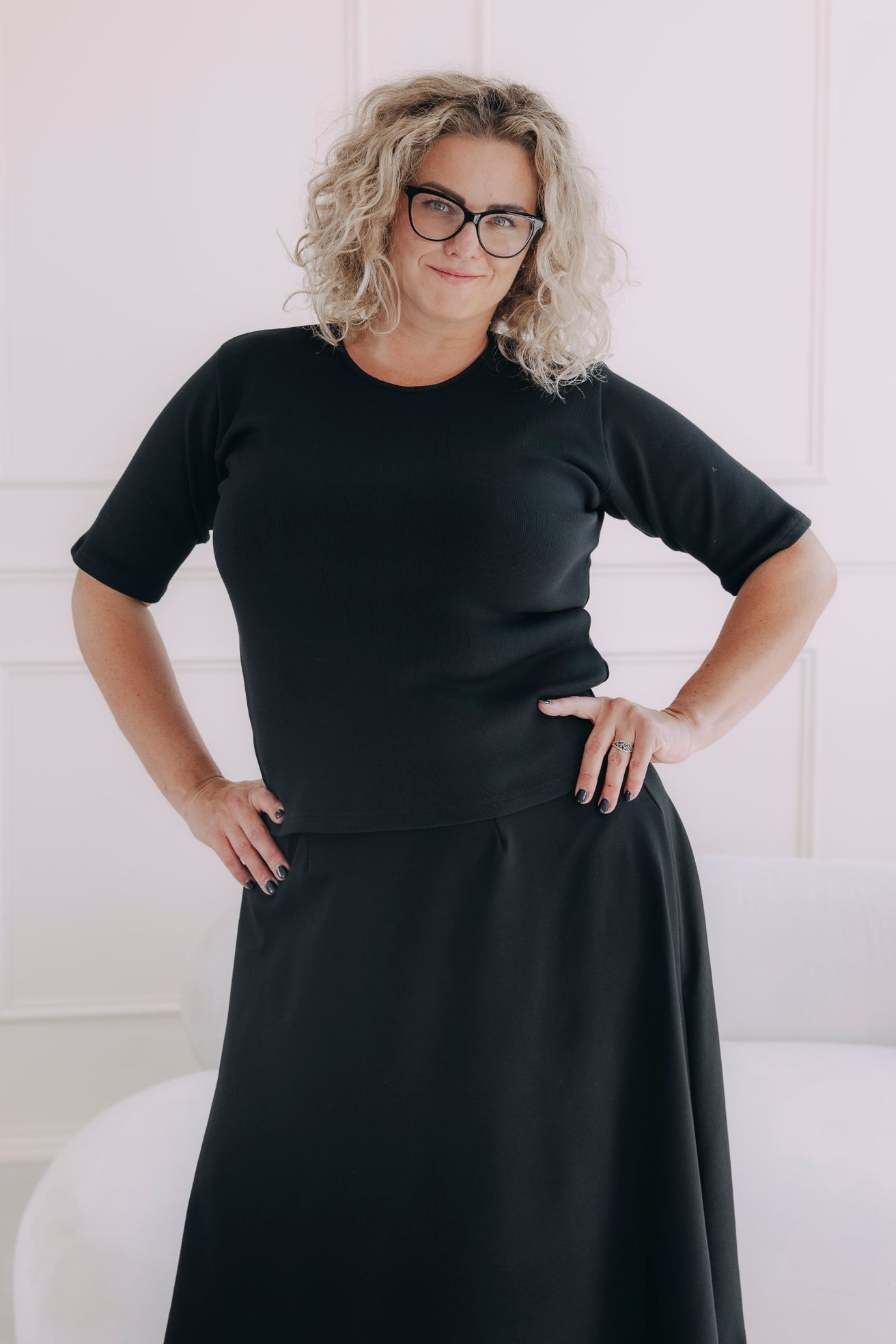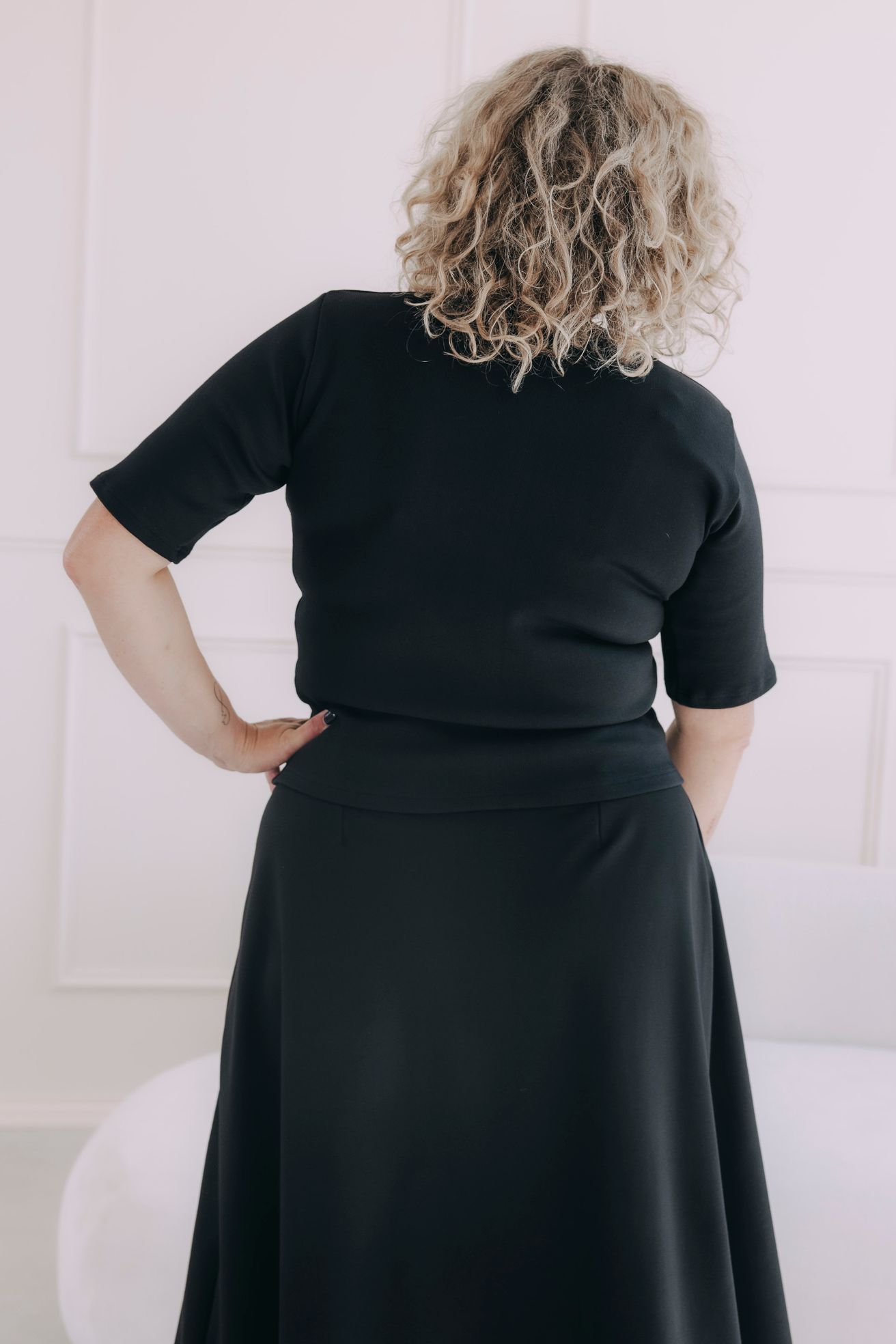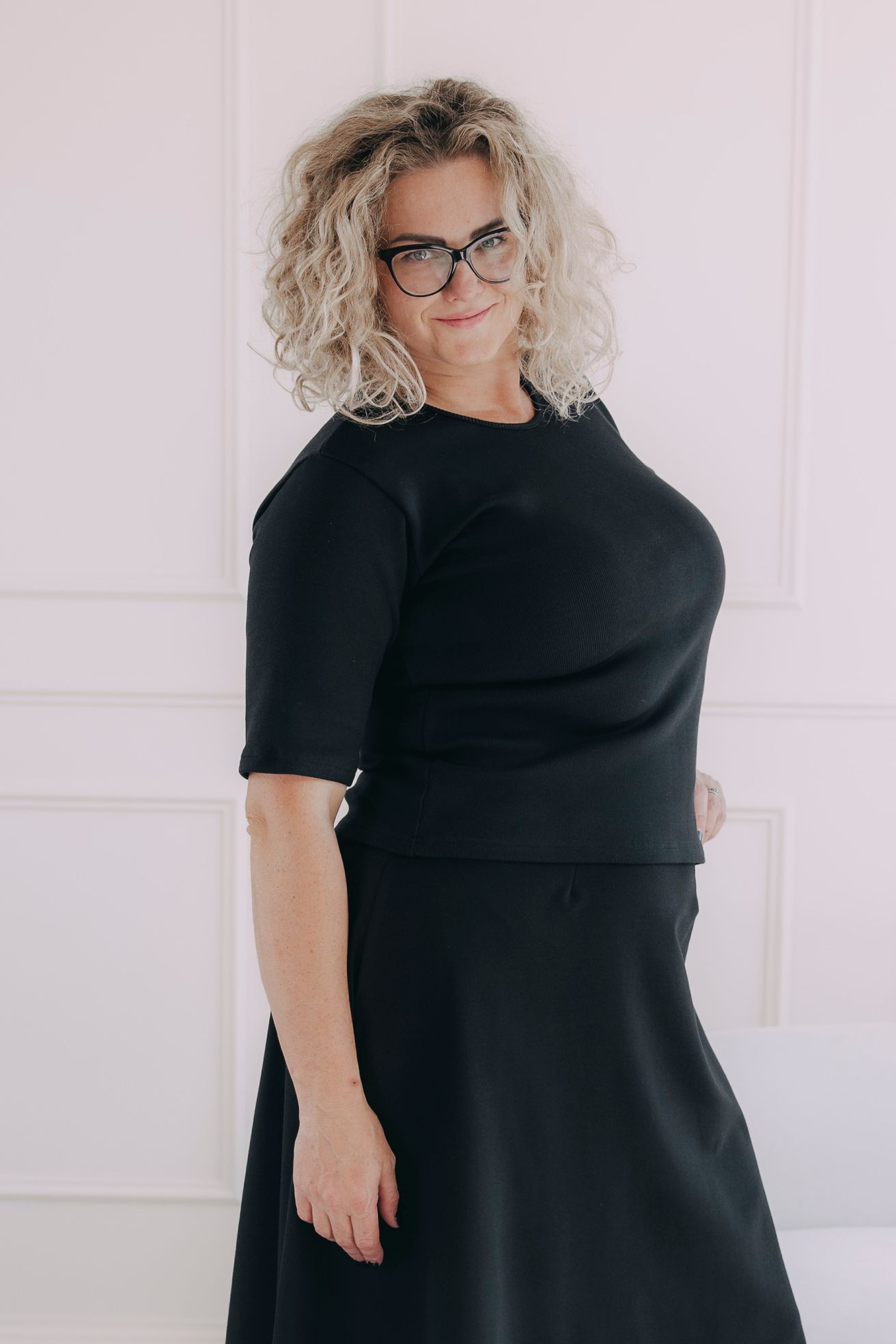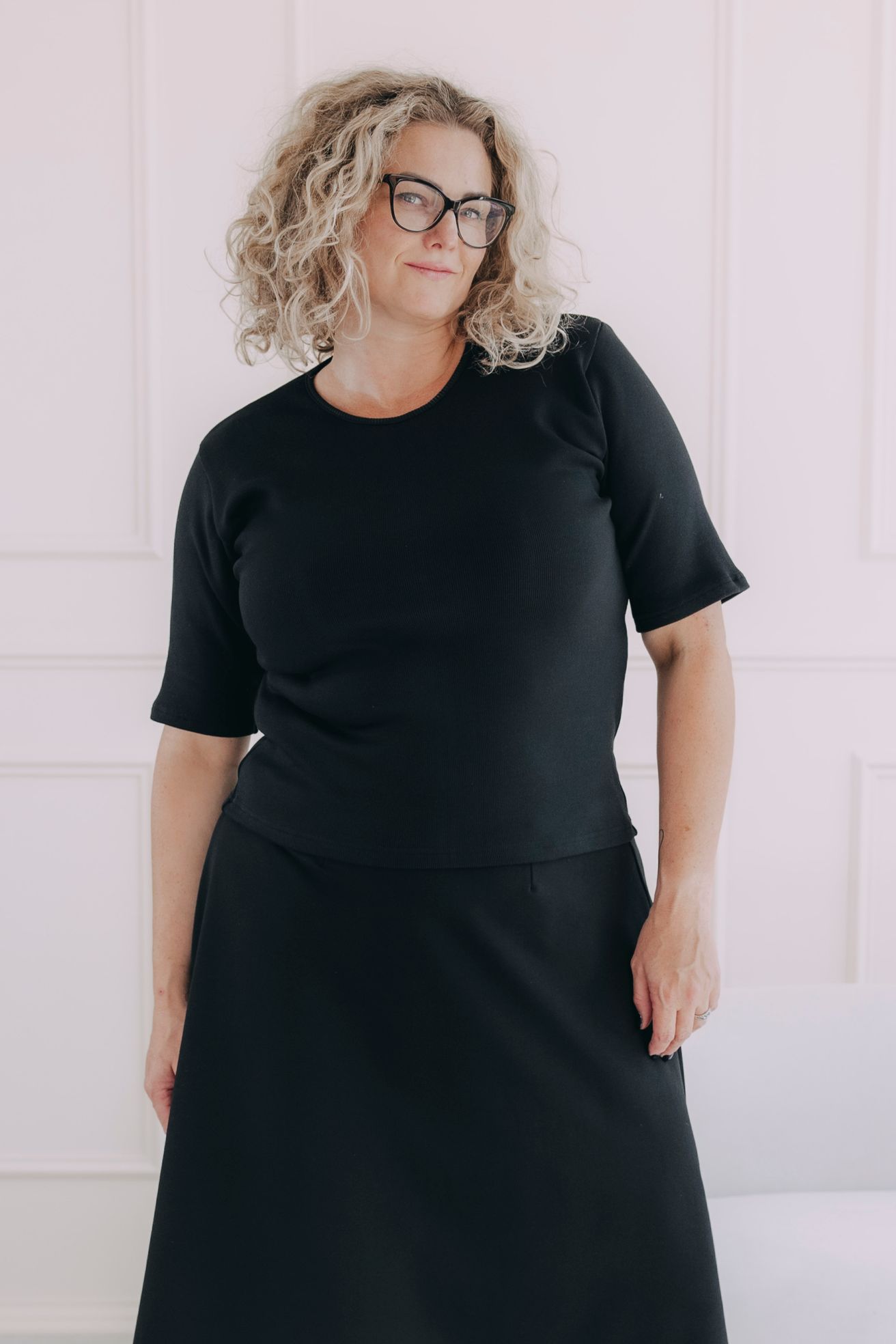 Dvě varianty, dvojnásobná volnost výběru. Tričko si můžete vybrat v klasické délce, ta bude ideální k sukni nebo do kalhot s vyšším pasem, nebo v prodloužené verzi (+10 cm), která přidá trochu víc pohodlí i jistoty při každém pohybu. Vyberte si tu, která vám bude nejlépe slušet.