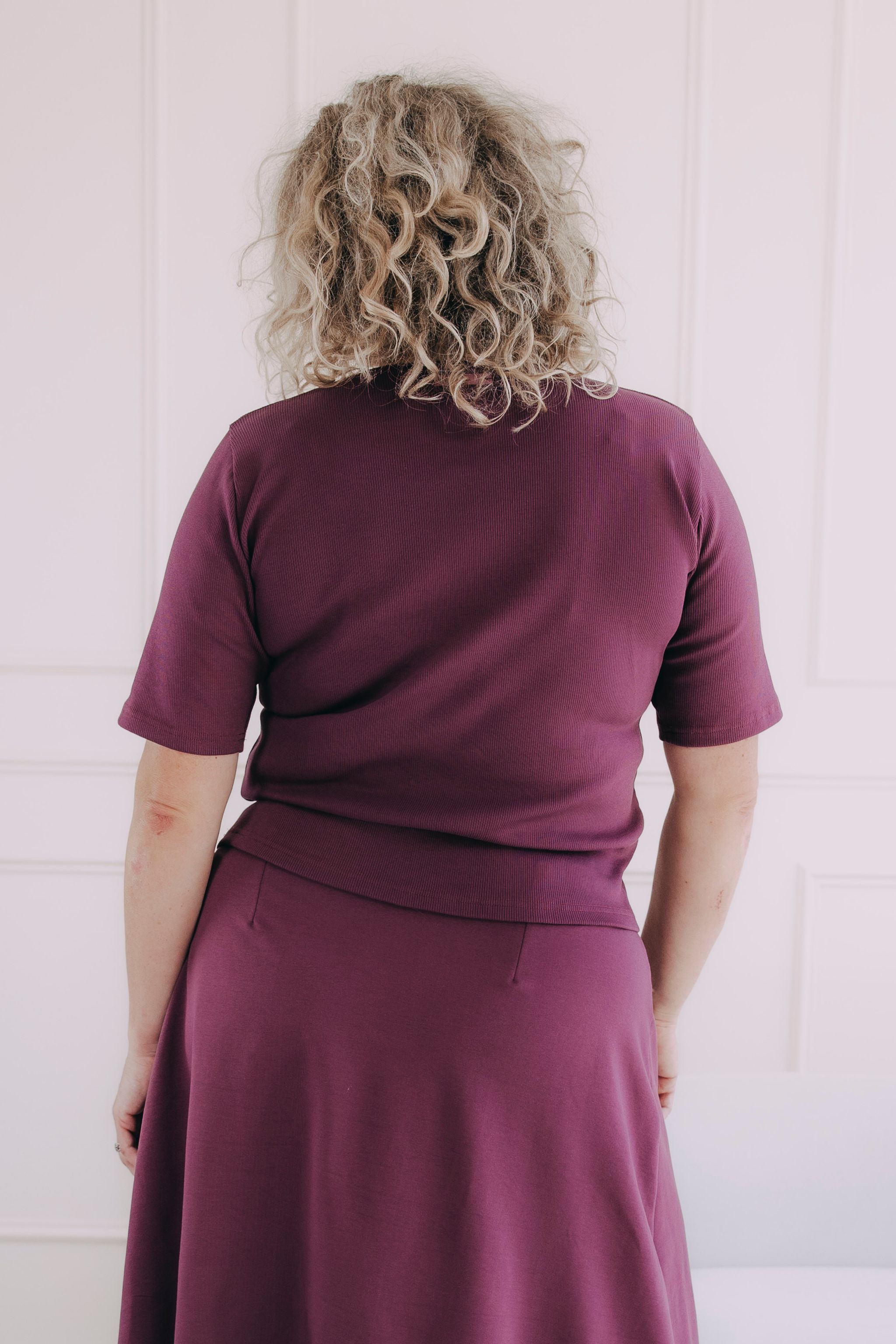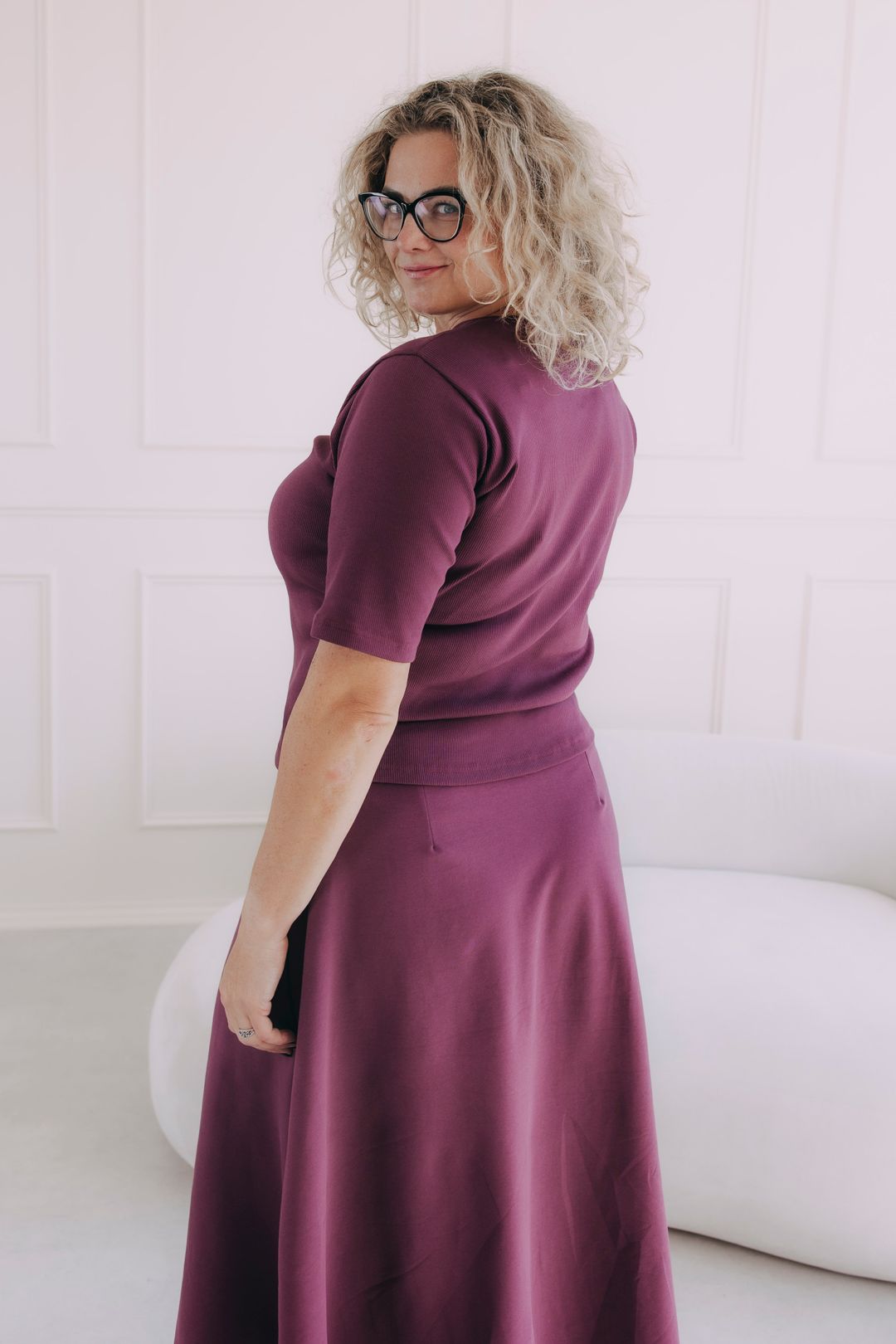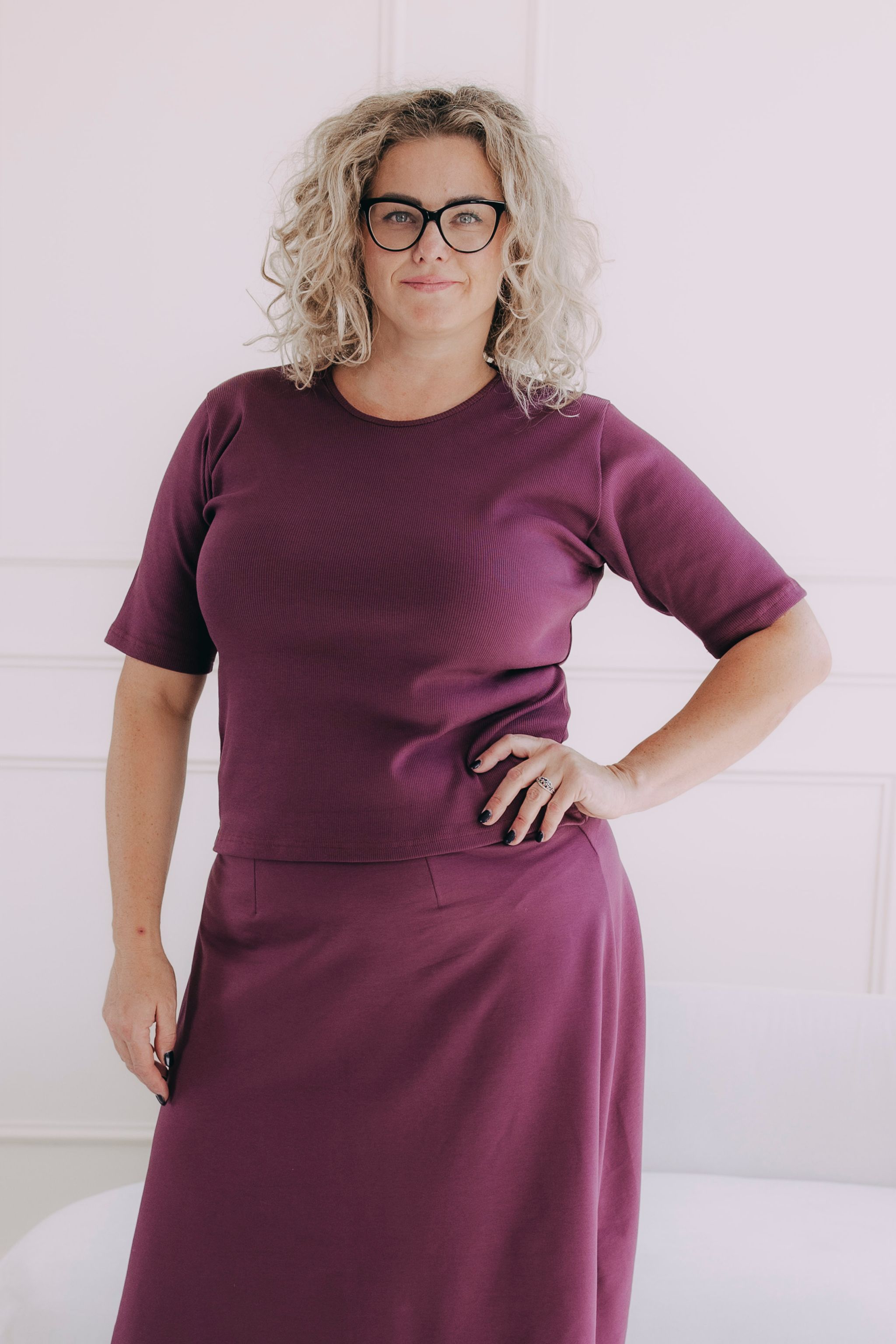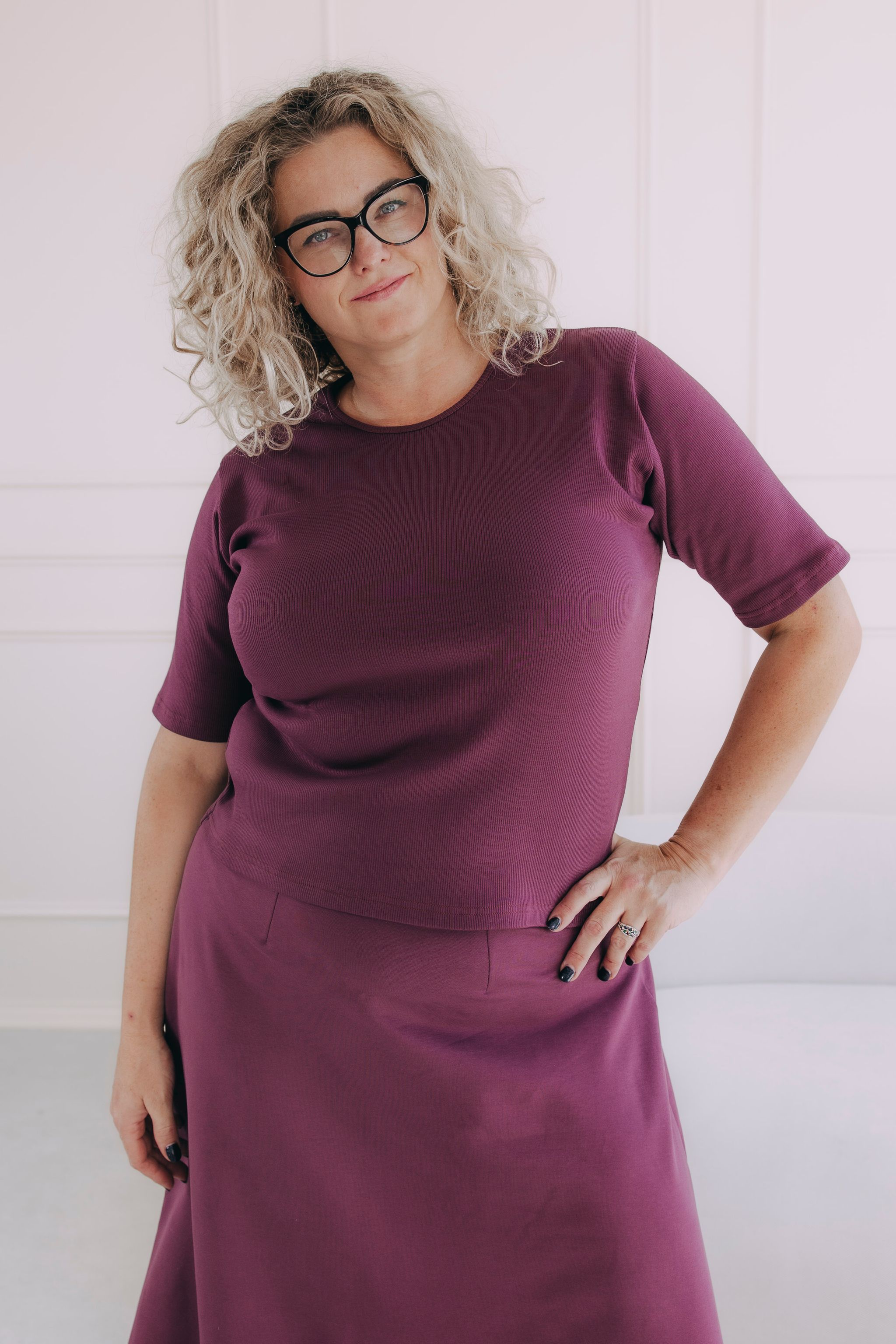 Dvě varianty, dvojnásobná volnost výběru. Tričko si můžete vybrat v klasické délce, ta bude ideální k sukni nebo do kalhot s vyšším pasem, nebo v prodloužené verzi (+10 cm), která přidá trochu víc pohodlí i jistoty při každém pohybu. Vyberte si tu, která vám bude nejlépe slušet.