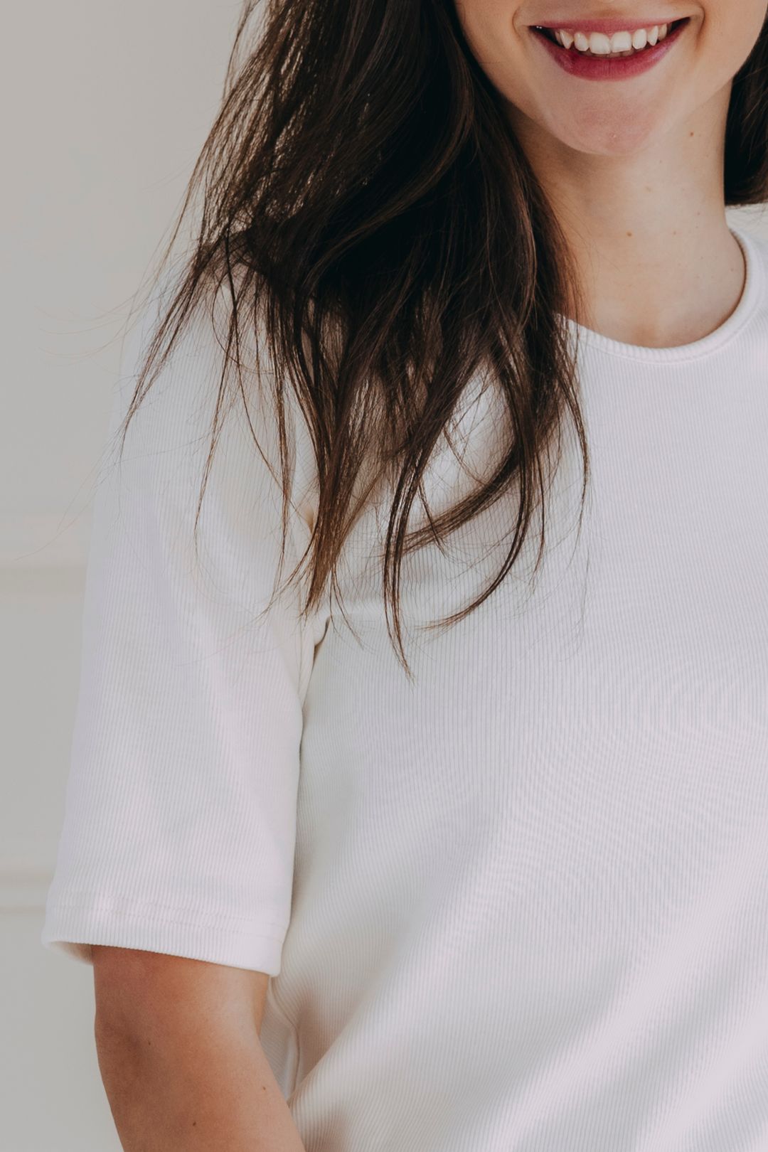 Materiál síce vďaka elastanu a vyššej gramáži skvele drží tvar, ale aj ten najkvalitnejší úplet sa môže po celodennom nosení mierne uvoľniť. Po šetrnom vypraní sa však tričko vráti do pôvodného stavu a bude vyzerať ako nové.