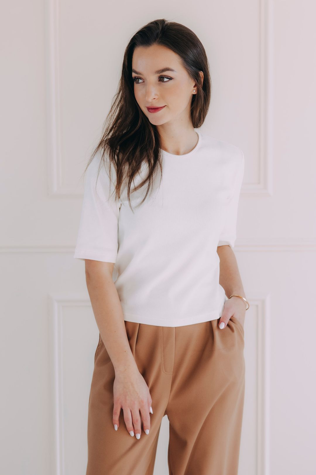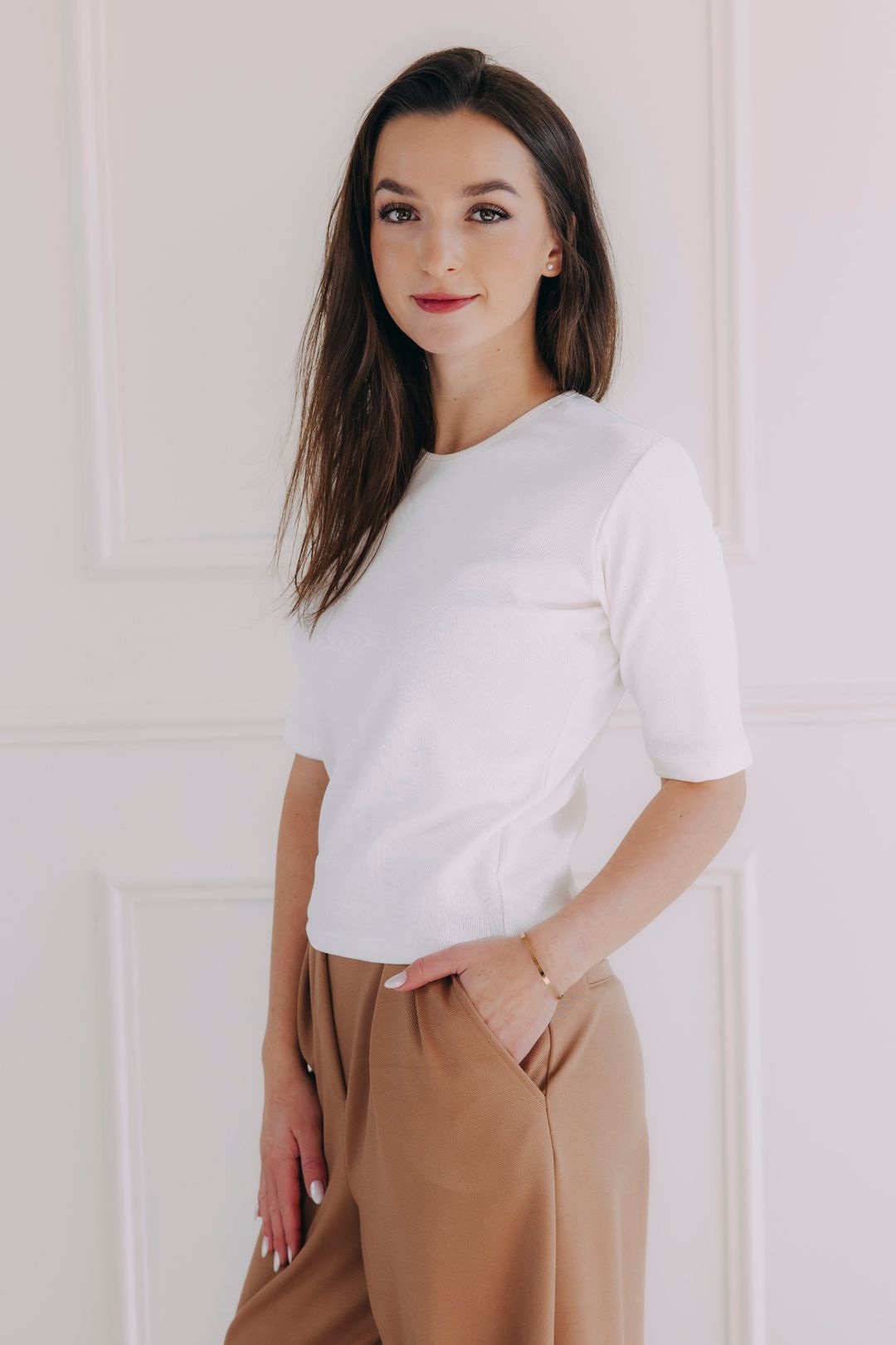 Tričko Malik má ideálnu dĺžku sahajúcú k bokom, ktorá sa prispôsobí vašim potrebám. Môžete ho nosiť voľne cez nohavice alebo sukňu, ale ľahko sa dá zastrčiť do kúskov s vysokým pásom pre elegantnejší look. Vďaka premyslenému strihu sa nevyhŕňa a drží na svojom mieste akokoľvek ho nosíte.
