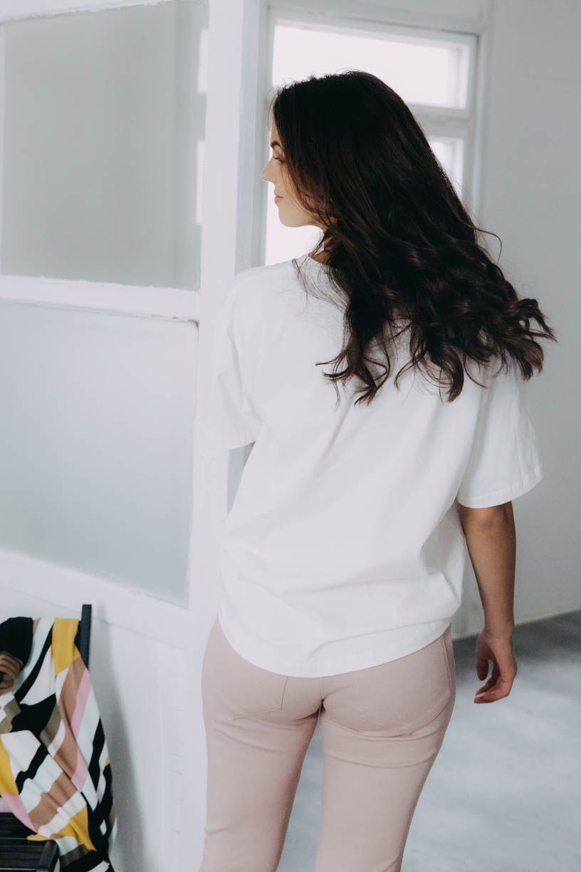 Radosť pre všetkých, kto holduje minimalizmu a potrpí si na basic kúsky. Tričko Safu si okamžite zamilujete pre jeho vychytané drobnosti: predná časť je mierne kratšia ako zadná a má na spodnom leme všitú nenápadnú gumu. Podkasávanie s ním tak bude úplná brnkačka. Širší klasický rukáv a véčkový výstrih sa jednoducho len tak neopozerajú, a tak nebol dôvod o tieto detaily ochudobniť aj tento kúsok.