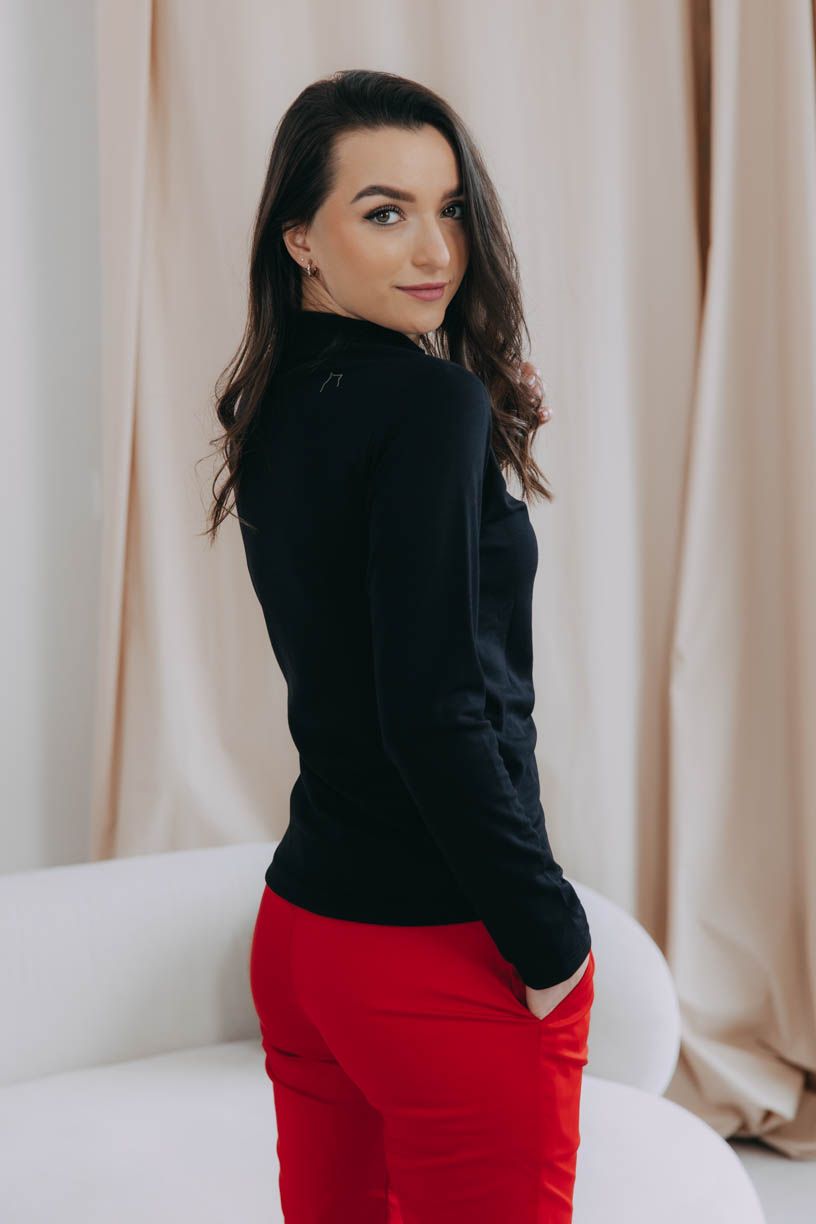Univerzálne, nadčasové a na všetky príležitosti. Čierne basic tričko Tatu s decentným stojačikom a dlhými rukávmi využijete kedykoľvek. Aj s efektnou mašľou.