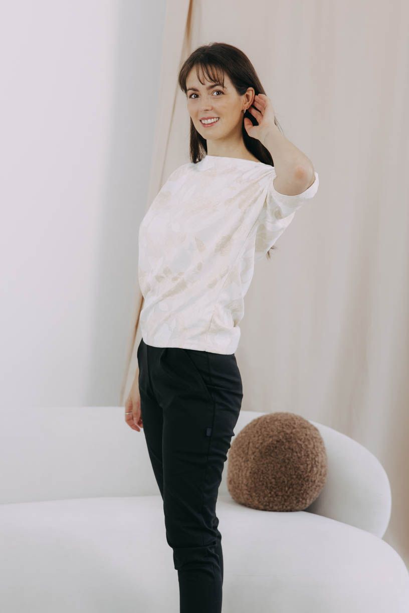 Tričká Yoko ženy milujú pre ich pohodlný, a pritom nevšedný strih, ale aj látky, z ktorých ich šijeme. Inak tomu nie je pri Yoko Gold Flowers s ľahkým leskom a vďaka bielym a zlatistým tónom dodáva vášmu outfitu slávnostný punc.