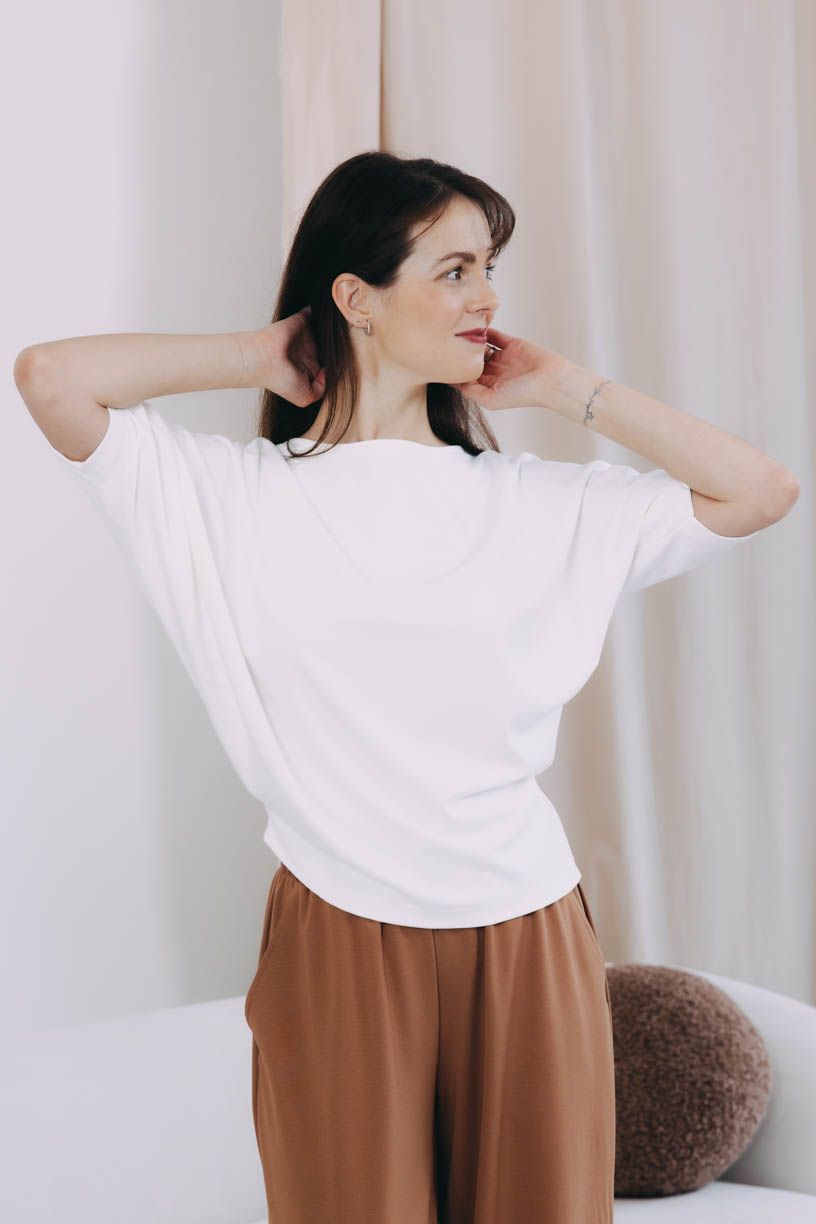 Niektoré kúsky sú tak rafinovane ženské, že sa jednoducho nedajú nemilovať. Naše asymetrické tričko Yoko s lodičkovým výstrihom a netopierými rukávmi patria stoprocentne medzi ne. Strih trička ste si mimoriadne obľúbili a preto neprestávame kúzliť s rôznymi farbami a materiálmi, z ktorých ho šijeme.