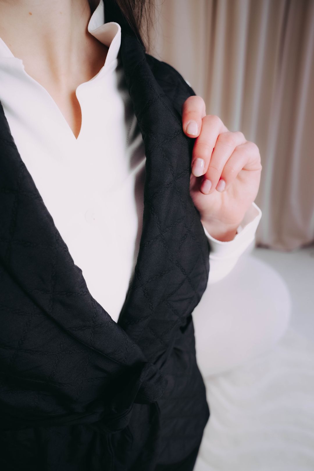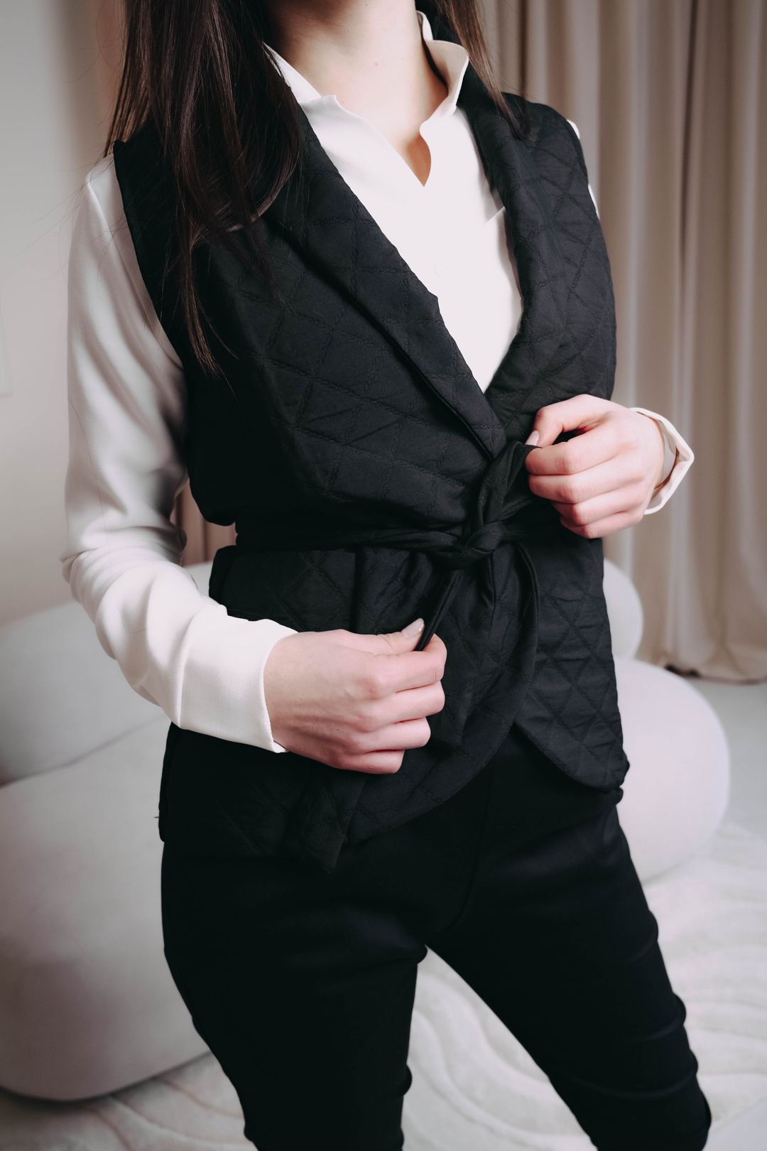 Vesta Bontu je dokonalým prechodným kúskom, ktorý v sebe spája pohodlie a štipku formálnej elegancie. Strih inšpirovaný naším ikonickým sakom Ania – rovný a lichotivý, so zaoblenými koncami. Jemný šušťákový materiál veste dodáva ľahkosť, zatiaľ čo prešívanie vytvára zaujímavý štruktúrovaný efekt.